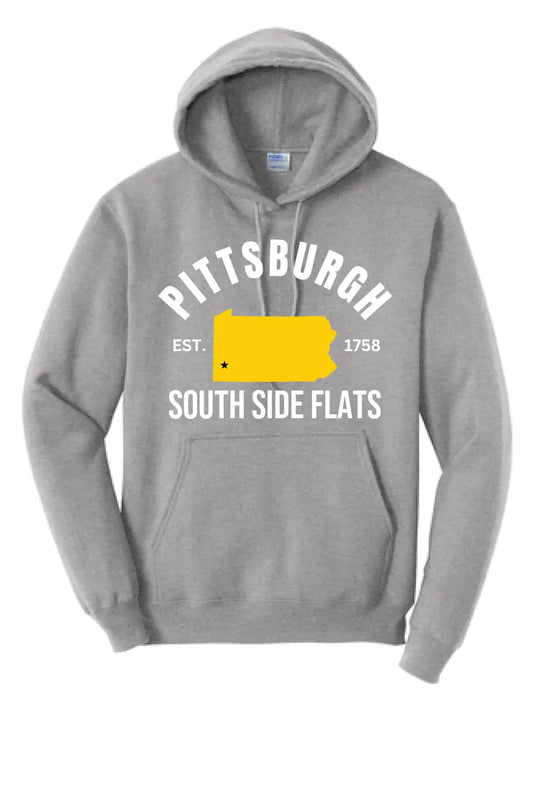Pittsburgh Est. 1758 Custom Text- Long Sleeve Core Blend Hooded Sweatshirt
